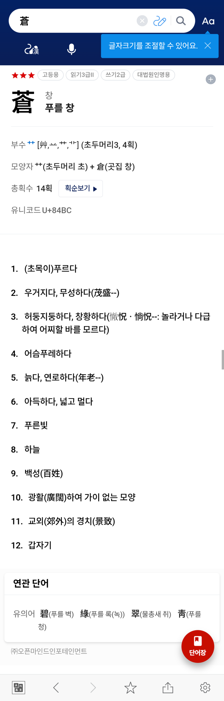 왜 あお가 청이 아니고 창인가요? 주술회전에서 あお 한자가 청인데 자막에는 창으로 나오고 あか는 적인데 왜